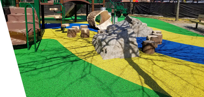 Our proven poured-in-place system consists of two layers. The first layer, or cushion course, is a blend of recycled SBR and Butyl rubber mixed with a solvent free MDI polyurethane prepolymer binder. The second layer, or wear course, consists of high quality EPDM and/ or TPV granules mixed with the highest quality MDI polyurethane prepolymer binder.